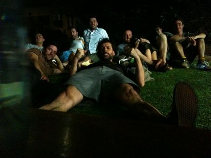 Then we went to Kondo’s for a classic six goal after match function. Steaks and an enormous daikon that we all had a go at grating. The lebanese blonde. Beers. Talk of family crests. Guy revealed that he comes from a long line of strawberry eaters. Nothing wrong with that. Strawberries are good for your teeth and they are the only fruit to have their seeds on the outside. Just like the Nannas who wear their cojones on the outside of their trousers when they smash the top of the table into the next cubicle and beyond. Perhaps, the Nannas’ finest hour!