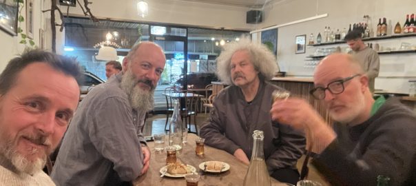 Afterwards we took it to sushi ten for raw fish, rice and cold Japanese tea. A balmy afternoon turned into a cool evening and we retired to the footpath outside out Red something on St George’s for a beer and a blanket for Wal from the Emasculator.