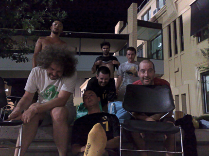 There was a full cheer squad of too many kids to count. Dinner was for 3 Nannas and 7 kids in the gardens with fish & chips and beer while the sun went down. Nice.